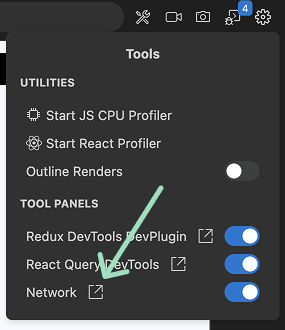The built-in tools for Network Inspector, Redux, Outline Renders (via react-scan) and React Query are integrated with the IDE and doesn't require any additional configuration.